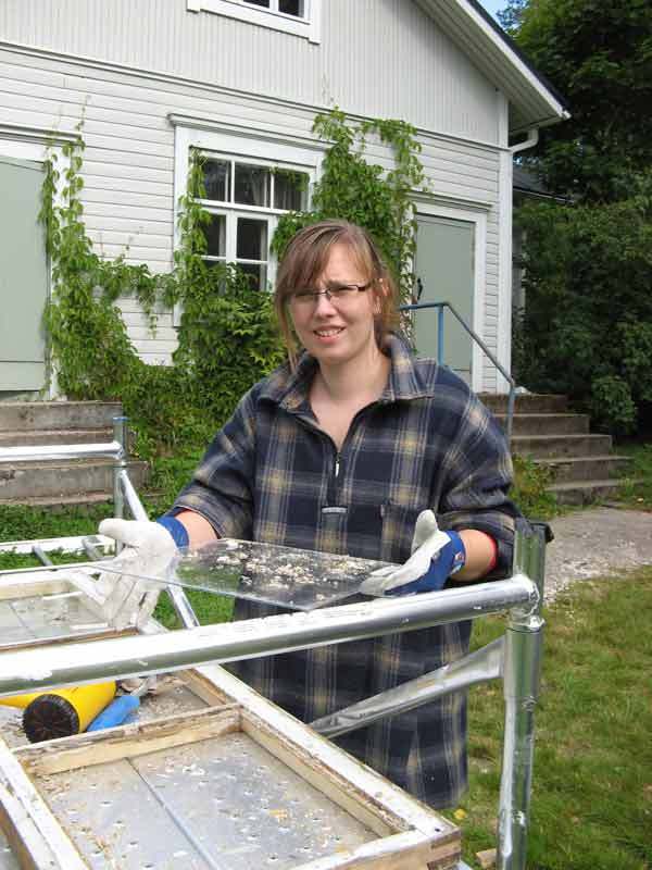 Ikkunoiden kittaus ja maalaus ovat oma taitolajinsa, jonka tyttäremme oppi restaurointi- ja erikoismaalausalan koulutuksessa. Koska ikkunoita oli paljon tässä vanhassa talossa, minutkin opetettiin kunnostamaan niitä myöhemmin: kittien poistoa lämpöpuhaltimella, puhallettujen lasien suojaamista ja puuosien paklaamista, uudelleen kittausta oikeaoppisesti sekä maalaamista.