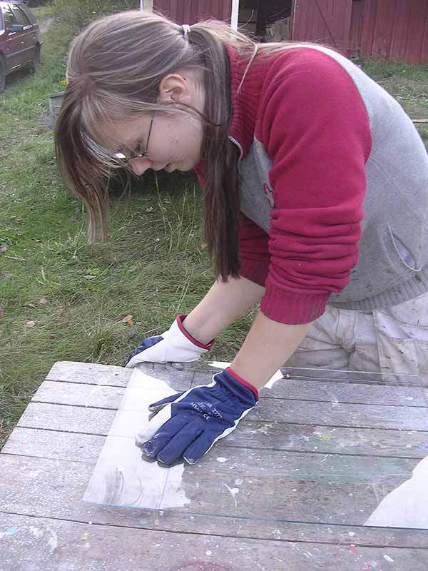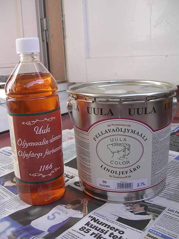 Pellavaöljymaalin työstö vaati oman opettelunsa, maali pitää ikään kuin hiertää pintaan. Jos maalia menee liikaa, se ei kuivu ollenkaan tai se menee ryppyyn kuivaessaan. Ohuita maalikerroksia voi sitten laittaa useitakin.