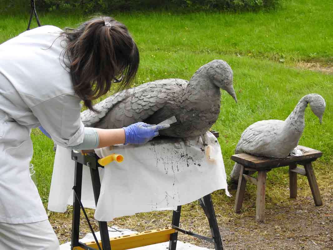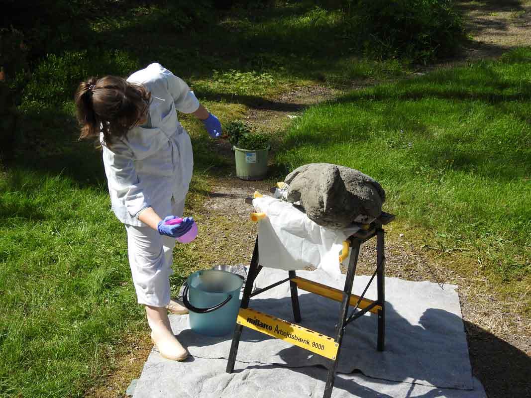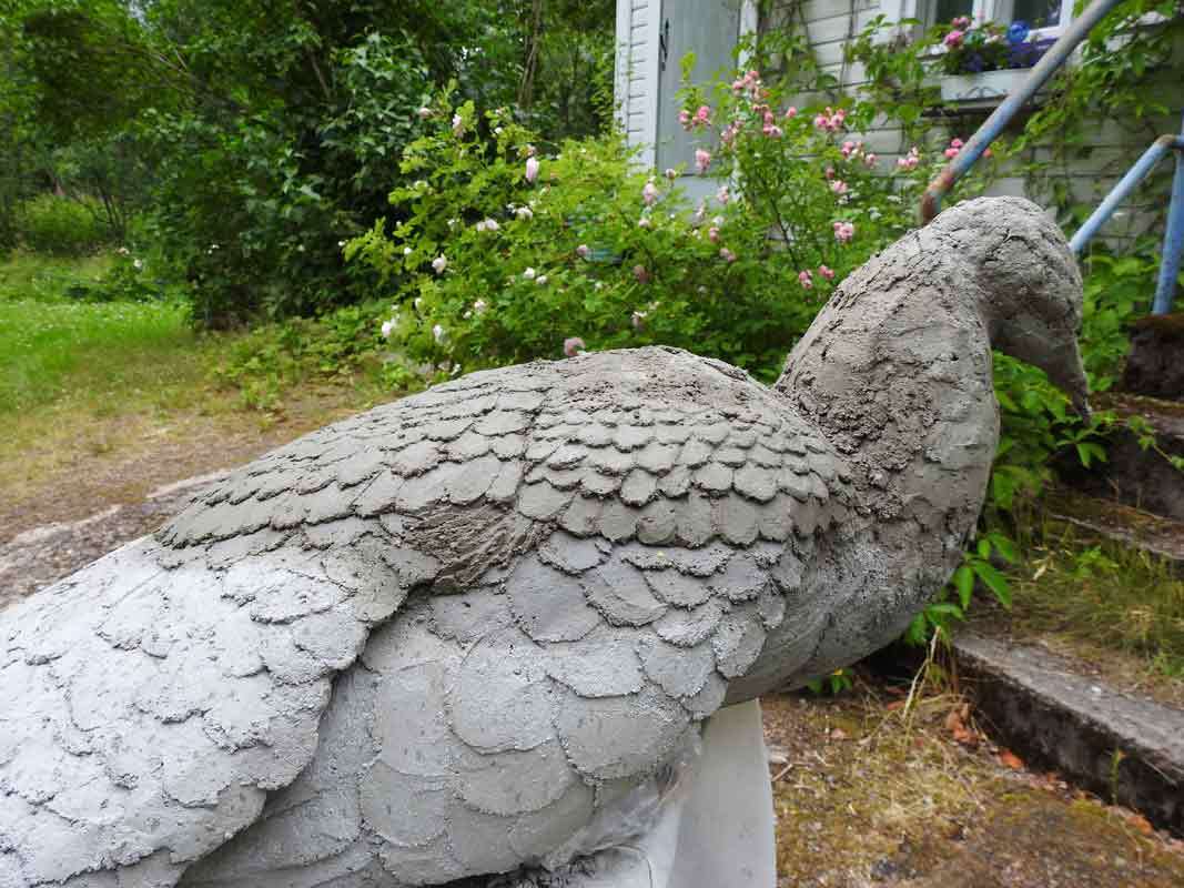 Tyttäremme Heidi oli valmis aloittamaan projektin. Hänellä oli taidekoulussa ollut sivuaineena kuvanveisto, mutta hänen opiskellessaan siellä betoni ei kuulunut käytössä oleviin opetusmateriaaleihin. Betoni materiaalina ei siis ollut tuttu, mutta se kiinnosti meitä molempia. Betonista veistomateriaalina ei myöskään löytynyt kovin paljon tietoa, joten betonilintu -projektista tuli aika tavalla kokeellinen.