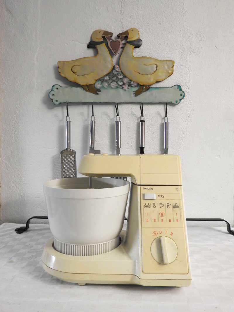Betonimassan sekoittaminen oli aina oikein suoritus ja mietin, miten sitä saisi helposti sekoitettua. Sitten muistin vanhan monitoimikoneen, jolla olin aikaisemmin tehnyt pullataikinaa. Nykyään pullataikinat jäävät tekemättä (vanhetessa ei pullaakaan saa syödä niin kuin ennen), joten kone sai nyt uuden tehtävän. Siinä oli helppo sekoitella pieniä määriä massaa päällimmäiseen kerrokseen käytettäväksi. Astia täytyi vain puhdistaa heti työn päätyttyä, ettei betonia jäisi astian pintaan. Nyt Heidi pystyikin sekoittamaan seoksen itse. Työtäkin hän saattoi jatkaa pidempään illalla, kun massaa syntyi näppärästi yleiskoneella.