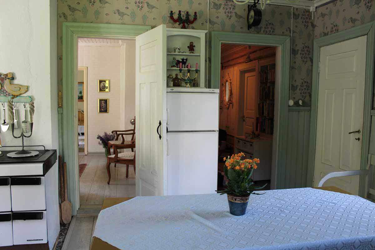 Kotoa saamani kauniin pirttikaluston isäni oli maalannut eri vuosikymmeninä muutamia kertoja. Meille pöydän kansi ja penkkien päällystät olisivat sopineet nyt kaapin vihreäsävyisiksi. Suunnittelin maalaavani nekin pellavaöljymaalilla, mutta niin vain kävi, etten ole vieläkään saanut aikaan sitä työtä. Isäni oli tehnyt aikoinaan todella tarkkaa työtä maalatessaan, joten harrastelijana siitä voisi tulla vähemmän täydellinen. Mutta täytyyhän ihmisellä olla tavoitteita ja unelmiakin. Ehkäpä jonakin päivänä saan aikaiseksi tehdä tämänkin työn. Tupakeittiö on nyt kuitenkin valmis.