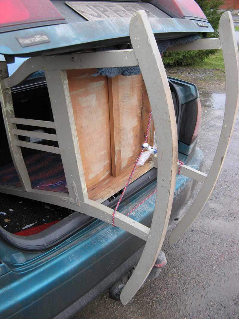 Maalaisjugend -tyyppisen penkkisängyn olin saanut kotoa perinnöksi, samoin keittiönpöydän ja penkit. Tupakeittiö sai myös uuden keinutuolin. Heidi oli koulutyönään kunnostanut vanhan keinun, joka oli myös maalaisjugend -tyyliä. Hänen oli pitänyt itse valita huonekalu ja hän oli ihastunut keinuun, jossa näki paljon potentiaalia. Koulussa Heidille oli kuitenkin leikkimielisesti naurettu, että toit sitten kouluun polttopuita, niin oli keinu huonossa jamassa. Hän näki keinunromussa kuitenkin kätketyn kauneuden. Heidi nyppi kaikki naulat ja kulmaraudat pois, korjasi puuliitokset ja liimasi keinun osat jälleen yhteen. Niin rakentui keinu, jonka hän maalasi valkoiseksi pellavaöljymaalilla. Olimme ihastuneita sen pehmeään mattamaiseen pintaan, joka on kauneimmillaan vasta n. vuoden jälkeen. Minä tein keinuun pehmusteet ja päällystin sen samalla kankaalla kuin penkkisängyn kannen.
