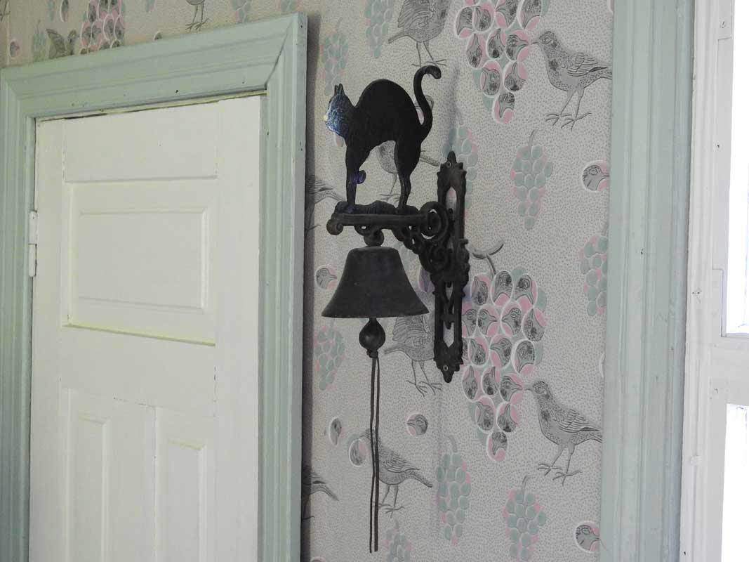 Niinpä sitten yhtenä päivänä kaikki työt olivat sillä mallilla, että voimme sisustaa uuden keittiön, vanhan pikkukeittiön tilalla oli nyt makuuhuone. Sinne täytyi mahduttaa jääkaappi, sen päälle tuli pikku hylly, joka oli jäänyt joskus varastoon. Asemakello yhdelle seinälle sopi mukavasti, samoin toiselle seinälle kirpputorilta löydetty vellikello.