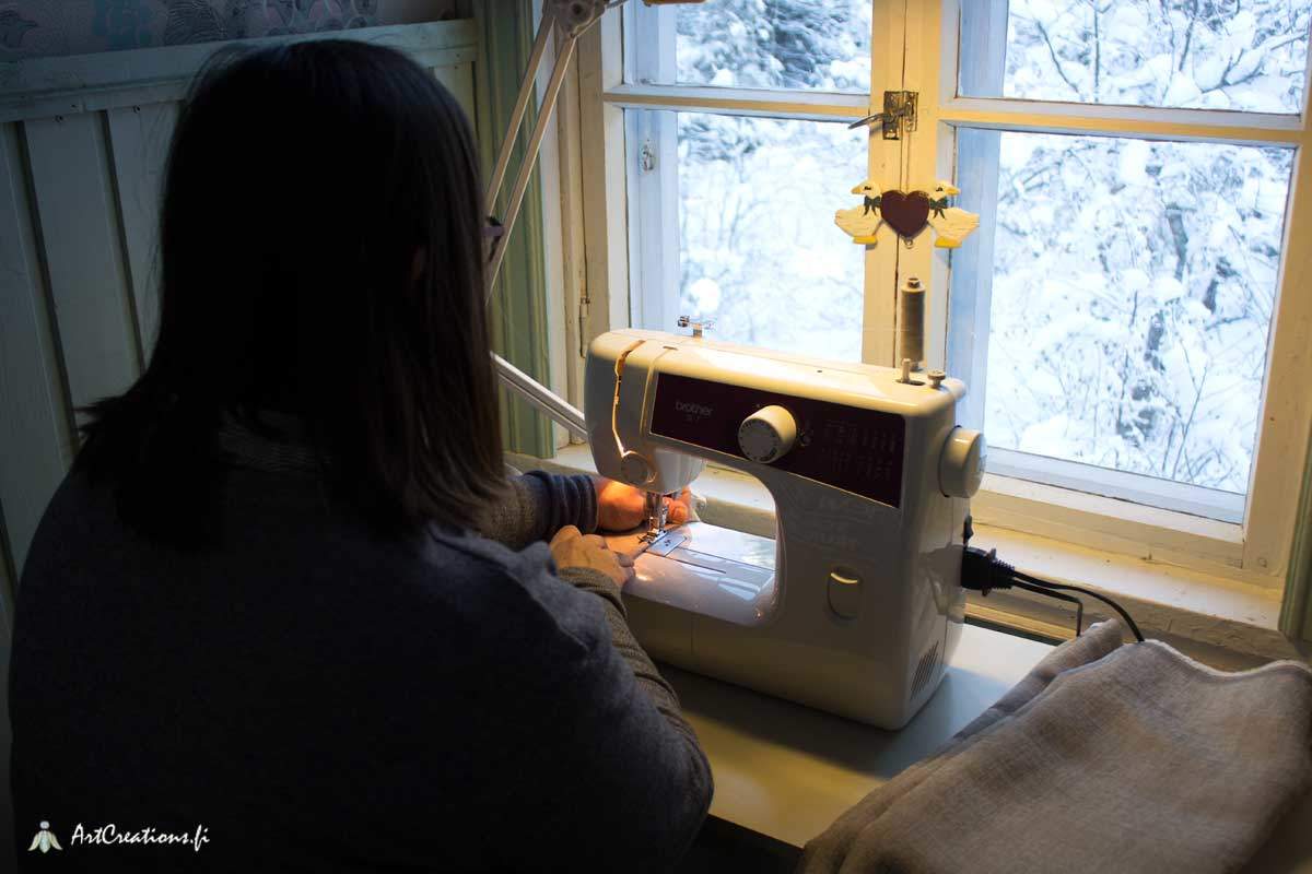 Ommellessani verhoja en ajatellut, että ikkunat olisivat eri kokoisia. Kun sitten kokeilin ensimmäisiä verhoja toisiin ikkunoihin, huomasin yllätyksekseni, että kaikki ikkunat olivat hiukan eri kokoiset. Joudun huomioimaan sen muissa verhoissa, mutta onneksi kangasta oli tarpeeksi, että voin pidentää ne joka ikkunaan sopivan pituisiksi.